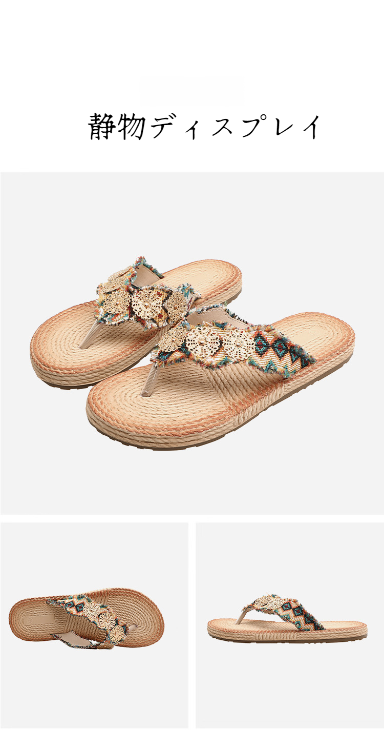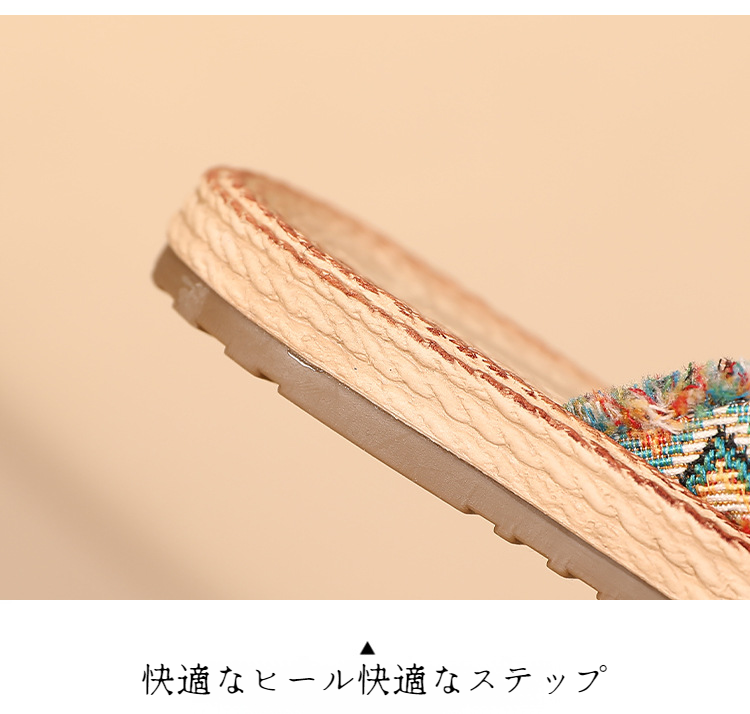 夏の快適リネンアウターフラットスリッパ クリップバックルサンダル クリップオンリネンシューズ